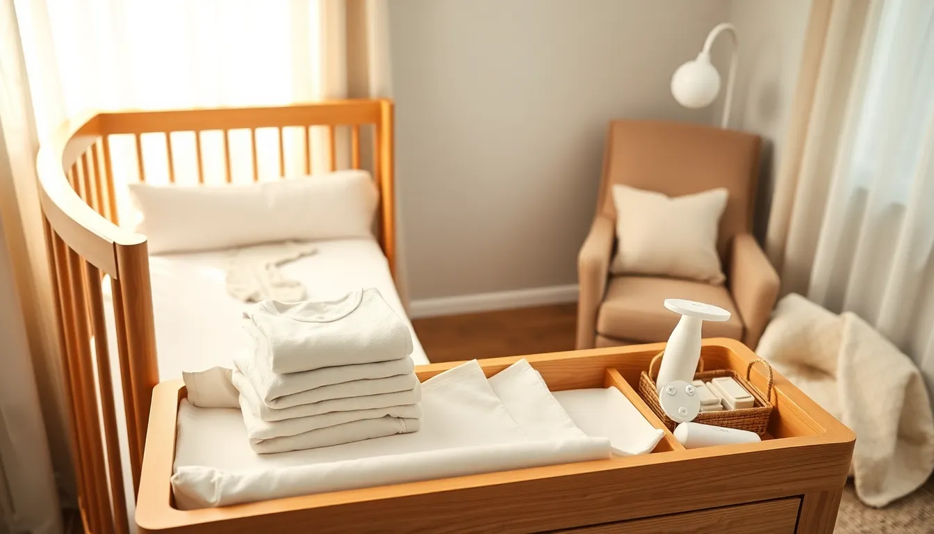 Organize these items near the changing station for quick access. Some parents use a caddy to keep everything portable between rooms.